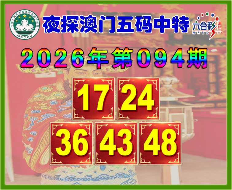 094期:『夜探澳门』 🥫五码中特🥫【17.24.36.43.48】开:17